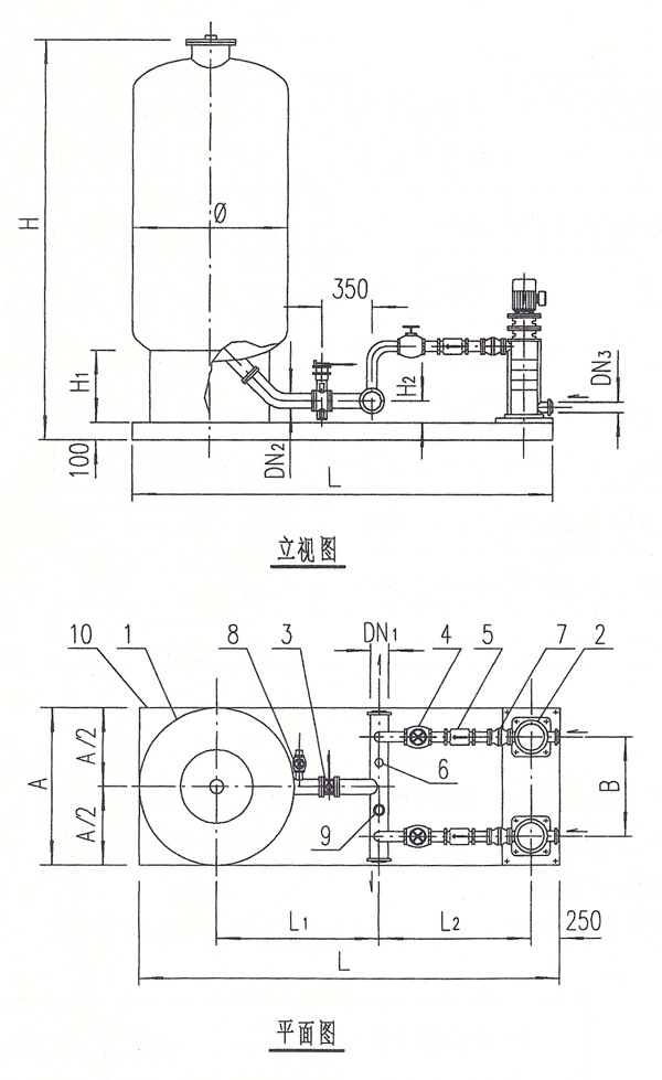立式增壓穩(wěn)壓供水設(shè)備平面圖