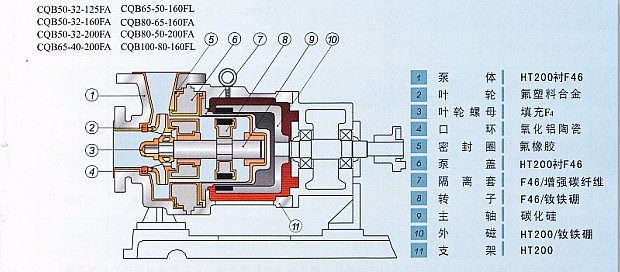 CQB型磁力泵是化工流程中杜絕跑、冒、滴、漏現(xiàn)象,消除環(huán)境污染,創(chuàng)造“無(wú)泄漏車間”、“無(wú)泄漏工廠”,實(shí)現(xiàn)安全、文明生產(chǎn)的理想用泵。