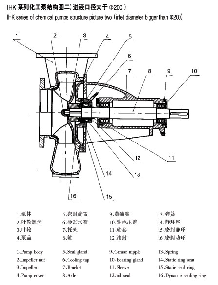 IHK型高溫濃漿化工離心泵結(jié)構(gòu)圖