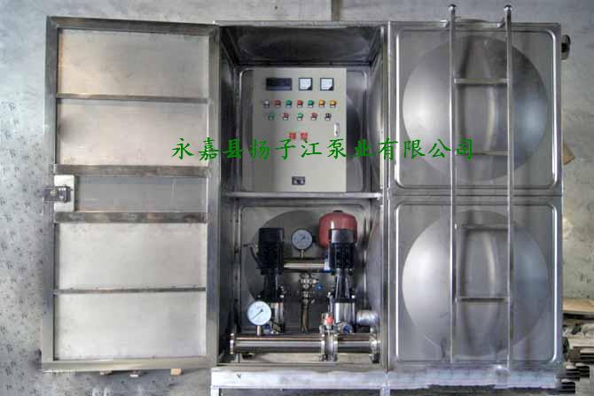 1,一體化專業(yè)設(shè)計,結(jié)構(gòu)緊湊,系統(tǒng)直接安裝在水箱里(如在室外可減少泵房的建設(shè))投資少,安裝方便,外形美觀。