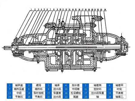 D型泵系單吸多級分段式離心泵,供輸送清水及物理化學性質(zhì)類似于水的液體之用。本泵揚程為19-245.7m,流量為18至162m3/h。液體的高溫度不超過80℃,廣泛應用于礦山排水、工廠及城市給水之用。