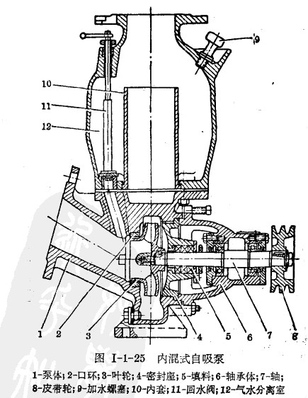 氣水混合過程是在葉輪進口及葉輪內部進行的,故稱為內混式自吸泵。