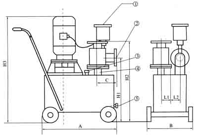 ①電動(dòng)空氣控制閥 ②吸液口 ③加液口 ④出液口(帶逆止閥,本單位供) ⑤放空口