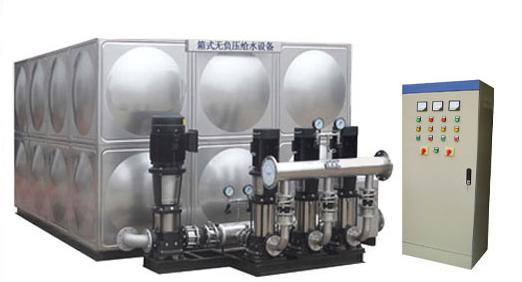 箱式管網(wǎng)疊壓供水設(shè)備(無負(fù)壓增壓水箱)是由水箱,防倒流裝置(根據(jù)需要設(shè)置),防負(fù)壓裝置,水泵機(jī)組,限壓保護(hù)裝置,膨脹罐(根據(jù)需要設(shè)置),控制儀表,控制柜,閥門,管路系統(tǒng),配套附件等組成,從供水管網(wǎng)直接吸水,通過壓力傳感器檢測出壓力,將檢測值和設(shè)定值進(jìn)行比較,計算出在市政自來水管網(wǎng)的原有壓力的基礎(chǔ)上需要增加的壓力值,確定水泵投入臺數(shù)和變頻器輸出頻率,調(diào)整水泵的轉(zhuǎn)速以符合用水曲線實現(xiàn)恒壓供水或變壓供水。水箱式管網(wǎng)疊壓供水設(shè)備(自動增壓水箱)大程度利用了市政管網(wǎng)自來水的原水壓力,對市政管網(wǎng)不產(chǎn)生負(fù)壓,系統(tǒng)會定時定量或在管網(wǎng)供水量不足時自動切換到水箱內(nèi)吸水,設(shè)備選用不銹鋼水箱和管件,減少了用水的二次污染,是新一代供水領(lǐng)域的節(jié)能產(chǎn)品。