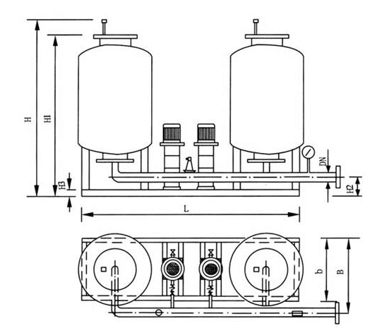 氣室按工藝設(shè)計(jì)充入預(yù)壓所需的氮?dú)猓b置連接系統(tǒng),安裝完畢,打開(kāi)本裝置與系統(tǒng)之間的閥門(mén)。當(dāng)系統(tǒng)水溫的變化引起水的容積膨脹或者收縮時(shí),由隔膜罐自行予以吸入或吐出,使系統(tǒng)壓力穩(wěn)定在予先設(shè)定的壓力上下限的區(qū)域里。如果系統(tǒng)由于漏水或其它原因引起壓力下降至予設(shè)壓力的下限時(shí),由電接點(diǎn)壓力繼電器動(dòng)作啟動(dòng)穩(wěn)壓泵,使之向系統(tǒng)供水,直至壓力達(dá)到所設(shè)定的壓力上限值時(shí)止。若系統(tǒng)壓力超過(guò)設(shè)定的高壓力值時(shí),安全閥自行向軟水箱或地溝泄水降壓,如此反復(fù),以維持系統(tǒng)的壓力平衡。