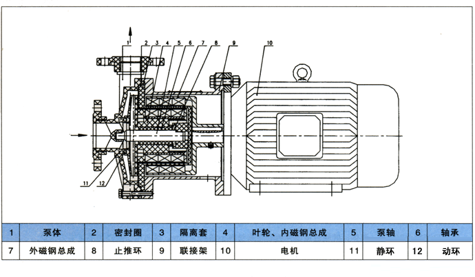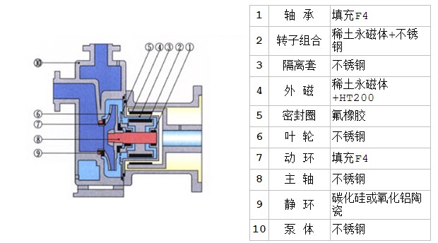 5、內(nèi)、外轉(zhuǎn)子:內(nèi)、外轉(zhuǎn)子配套使用,共同形成磁力泵的磁傳動部件。