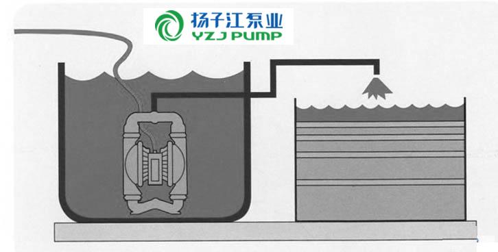 將泵浸在液體中,可代替潛水泵使用,壓縮空氣另用軟管引出。