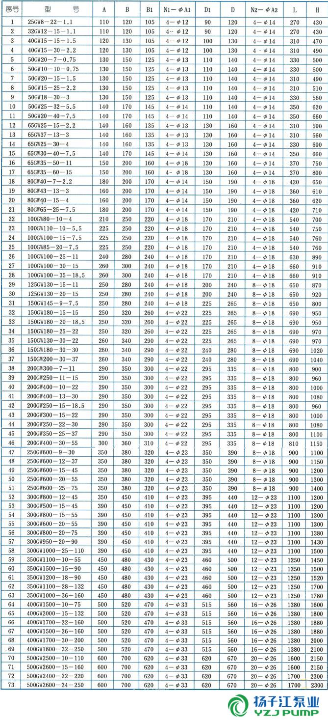 GW型管道式無堵塞排污泵安裝尺寸圖