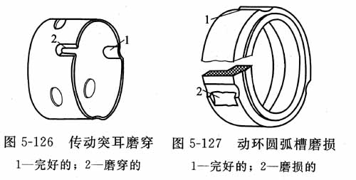 與傳動(dòng)座突耳接觸的動(dòng)環(huán)圓弧槽也產(chǎn)生相應(yīng)的磨損,見圖5-127,原因同上。