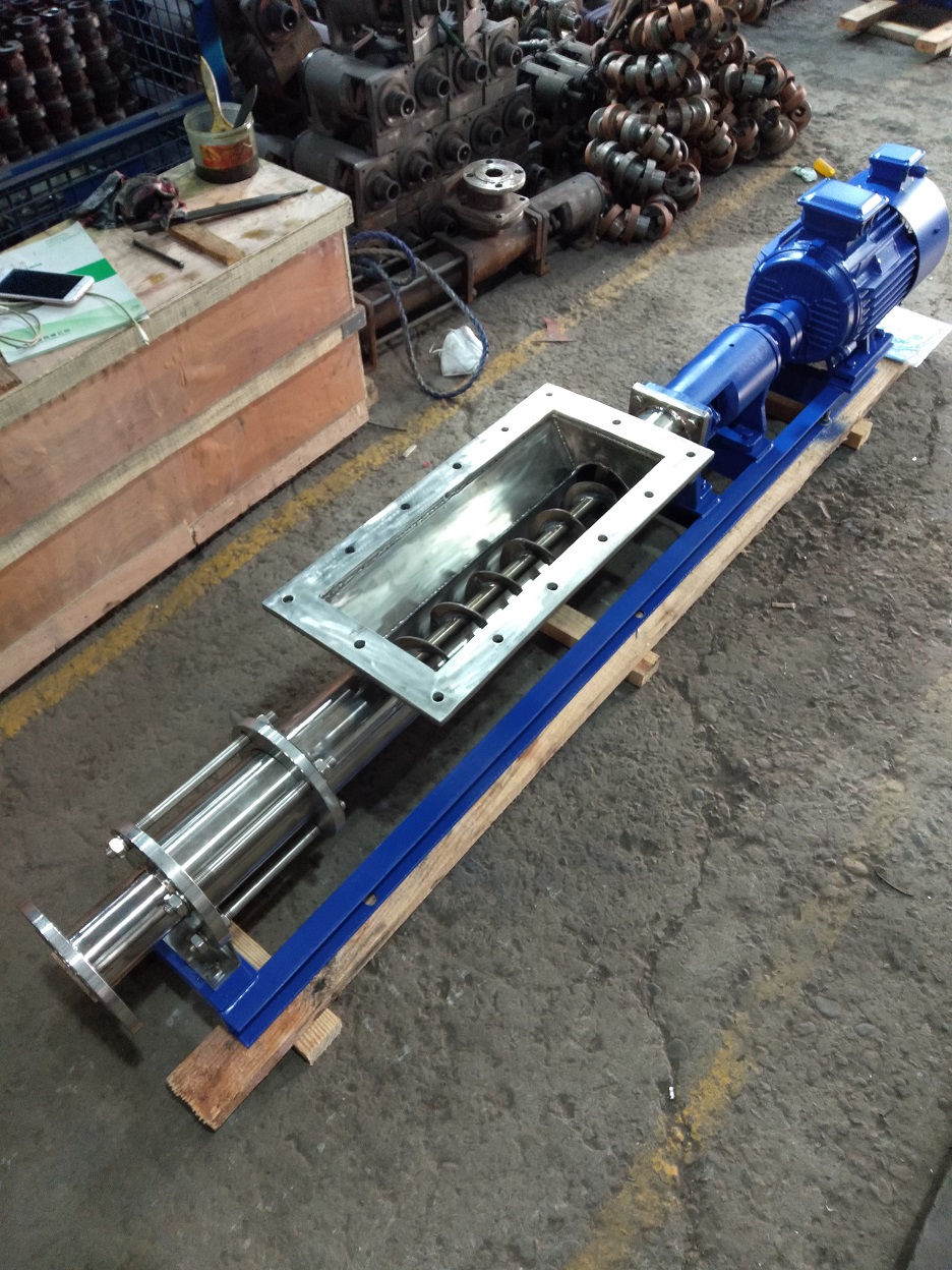G型單螺桿泵變頻電機(jī)配螺旋帶料斗拋光