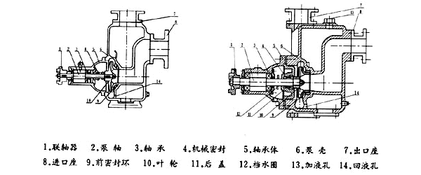 3.在寒冷季節(jié),應將泵體內(nèi)的儲液和軸承體冷卻室內(nèi)的水放空,以防凍裂機件。