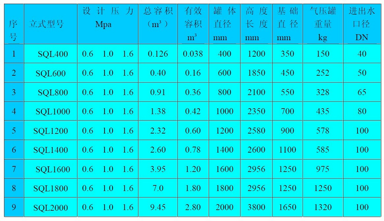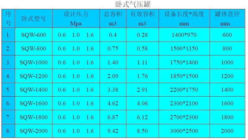 設(shè)計壓力:0.6Mpa ;1.0Mpa ;1.6Mpa