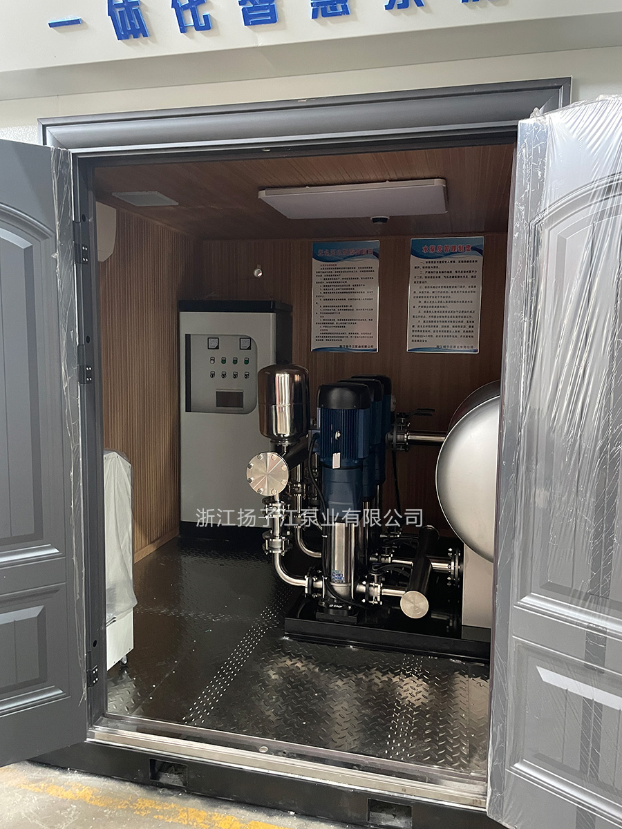 一體化智慧泵房由數(shù)字集成全變頻供水設(shè)備、管閥系統(tǒng)、網(wǎng)絡(luò)通信系統(tǒng)、視頻監(jiān)控系統(tǒng)、門禁安防系統(tǒng)、通風(fēng)除濕系統(tǒng)、降噪減震系統(tǒng)、保溫隔熱系統(tǒng)等部分組成。