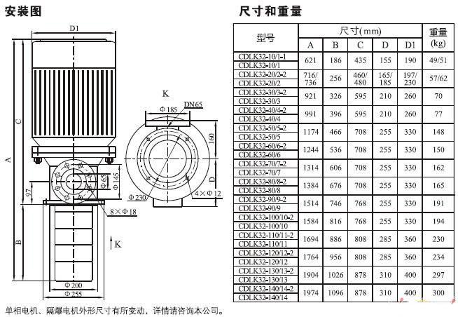 CDLK/CDLKF浸入式多級離心泵(安裝尺寸)
