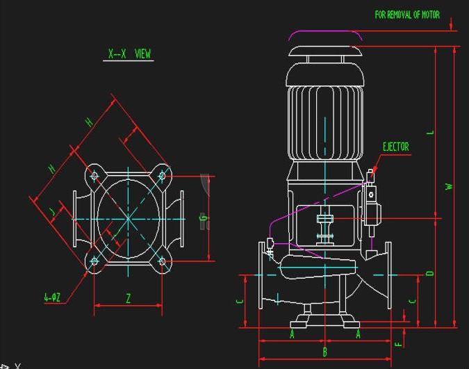 該泵為臥式單級單吸結(jié)構(gòu),主要有泵體,泵蓋,葉輪,泵軸,電機聯(lián)接架,剛性聯(lián)軸器,軸封,導(dǎo)軸承,泵座等組成。