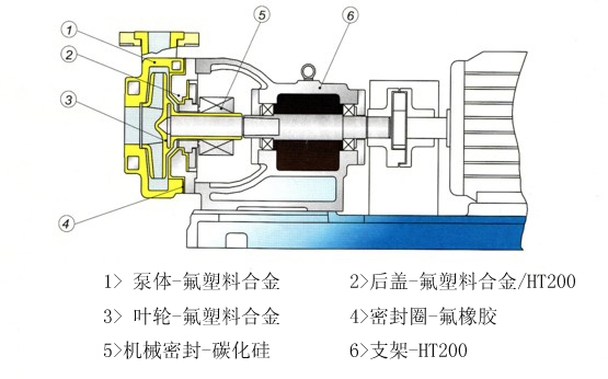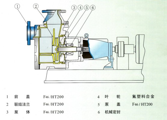 IHF襯氟離心泵按國家標準設計;泵體采用先進的生產(chǎn)工藝以金屬外殼緊襯氟塑料(F46)制造,泵的承重部分為金屬材料具有機械強度高、耐壓性強、抗機械沖擊力優(yōu)越等優(yōu)點;主要過流部件葉輪、泵蓋等均采用金屬嵌件外包氟塑料一次性高溫模壓而成;配置外裝式金屬波紋管機械密封,對磨材質:氧化鋁VS四氟、碳化硅VS四氟、硬質合金VS硬質合金,用戶可根據(jù)工況要求選擇對磨付。