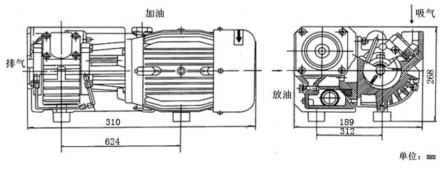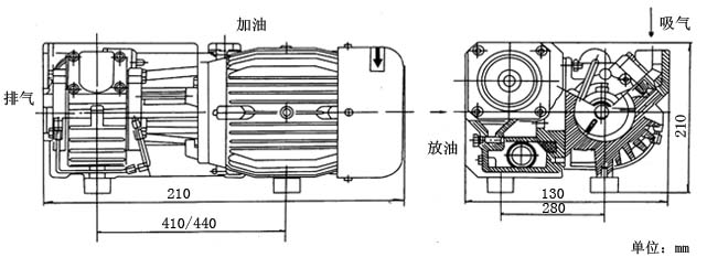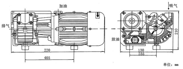 XD型單級旋片式真空泵結(jié)構(gòu)圖及安裝尺寸圖