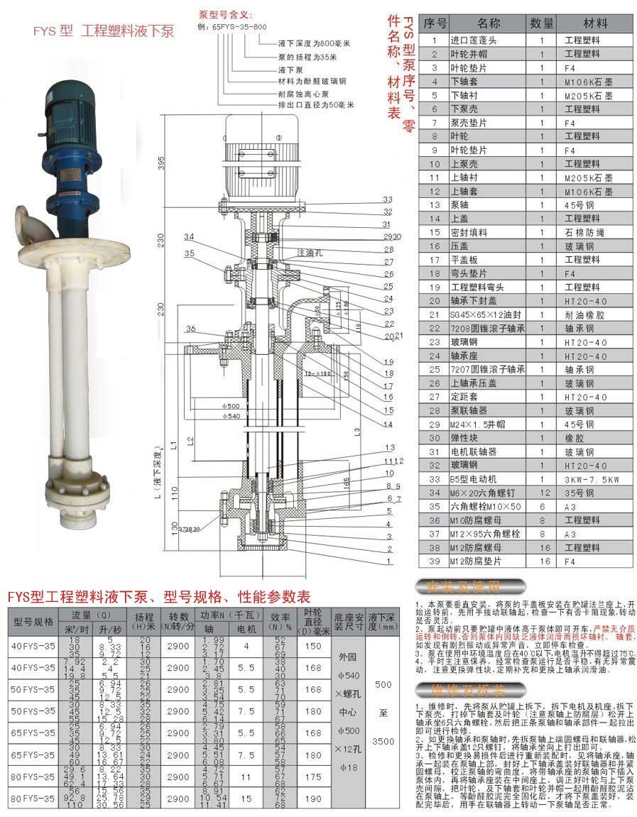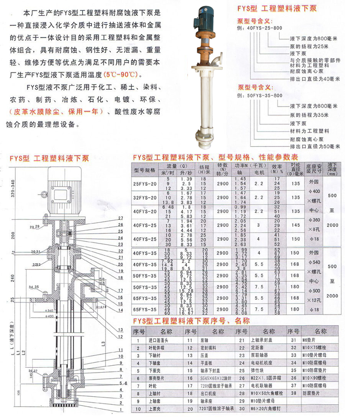 FYS工程塑料液下泵結構圖