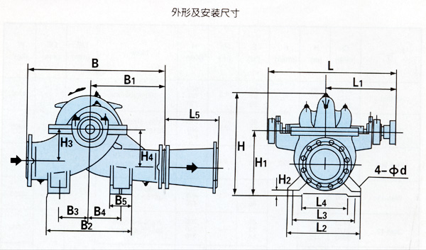 本系列泵是單級、雙吸、水平中開式離心泵,適用于汲送清水和無腐蝕性的液體。介質(zhì)高溫度80℃。軸承體通人冷卻水后,可輸送130℃以下的熱水。改變密封環(huán)、軸套和葉輪的材質(zhì),可以輸送含有泥沙的渾水。改變承壓零件的材質(zhì),可以提高泵的進(jìn)口壓力。