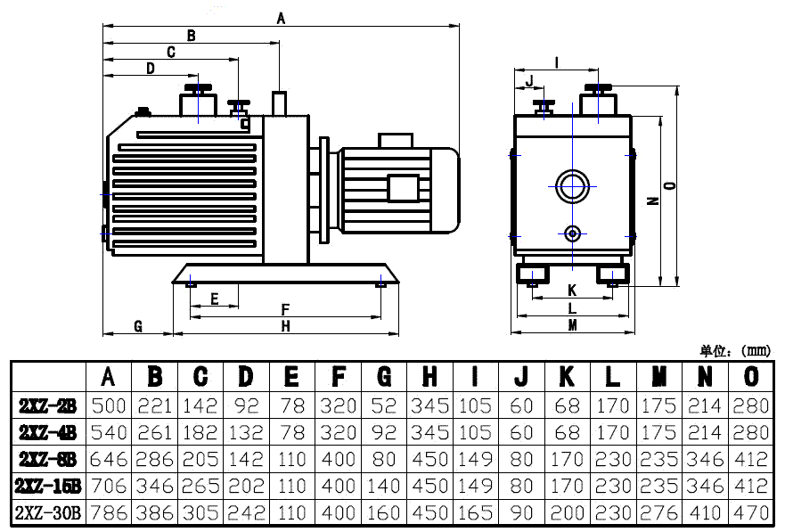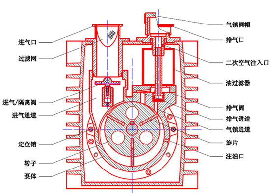 雙級(jí)高速直聯(lián)結(jié)構(gòu)旋片真空泵結(jié)構(gòu)圖及安裝尺寸圖