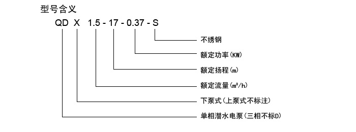 四、QDX型全不銹鋼潛水電泵(中進(jìn)水)型號規(guī)格參數(shù)