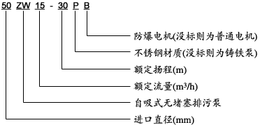六、ZWPB型系列防爆排污不銹鋼自吸泵型號意義