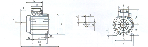1.Y2系列電動機機座外輪廓呈四方形兼圓形,散熱片呈垂直,水平平行分布,全部采用鑄鐵結(jié)構(gòu)。另外H63~112還兼有鋁合金壓鑄結(jié)構(gòu)。