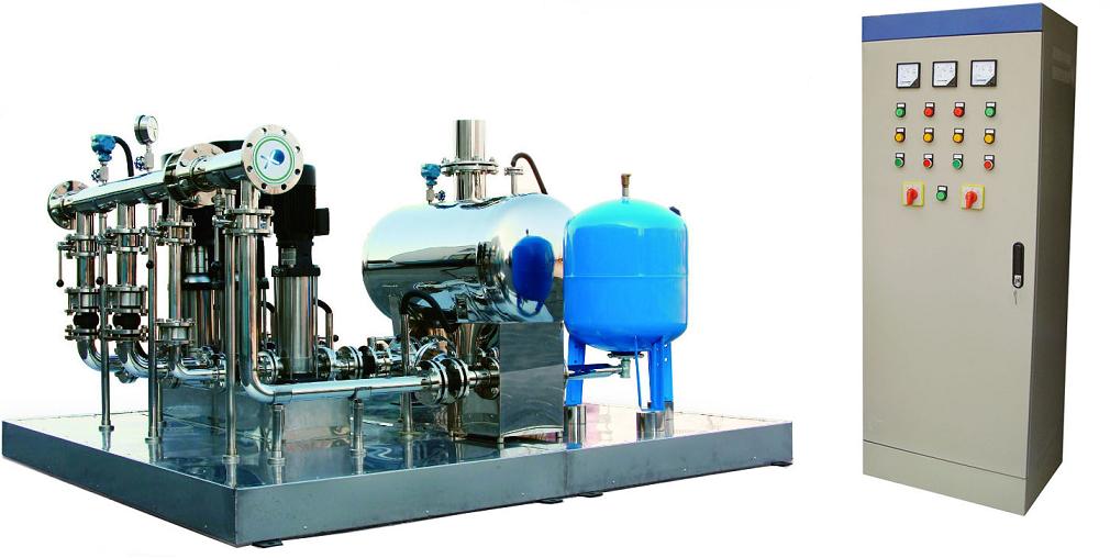 變頻無負(fù)壓自動(dòng)增壓給水設(shè)備是有無負(fù)壓裝置和泵組及控制柜組成的供水設(shè)備,穩(wěn)流裝置分為開式和閉式,開式流量調(diào)節(jié)器為不銹鋼水箱(稱箱式無負(fù)壓供水設(shè)備),閉式流量調(diào)節(jié)器為不銹鋼穩(wěn)流罐(罐式無負(fù)壓設(shè)備),將系統(tǒng)設(shè)備串接在市政自來水管網(wǎng)壓力不足的地方,設(shè)備通過壓力傳感器檢測出口壓力,將檢測值和設(shè)定值進(jìn)行比較,運(yùn)算出在市政自來水管網(wǎng)的原有壓力基礎(chǔ)上需要增加的壓力值,確定水泵投入運(yùn)行臺(tái)數(shù)和變頻器輸出頻率(反應(yīng)到電機(jī)及水泵為轉(zhuǎn)速)以符合用水曲線實(shí)現(xiàn)恒壓,變頻無負(fù)壓供水設(shè)備大限度地利用了市政自來水管網(wǎng)的原有壓力,對市政自來水管網(wǎng)不產(chǎn)生負(fù)壓,用不銹鋼水箱和穩(wěn)流罐取代老式水池,減少了用水二次污染,是供水領(lǐng)域新一代節(jié)能型產(chǎn)品。