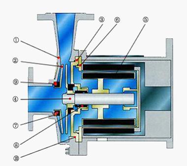 CQ型不銹鋼磁力驅(qū)動泵結(jié)構(gòu)圖: