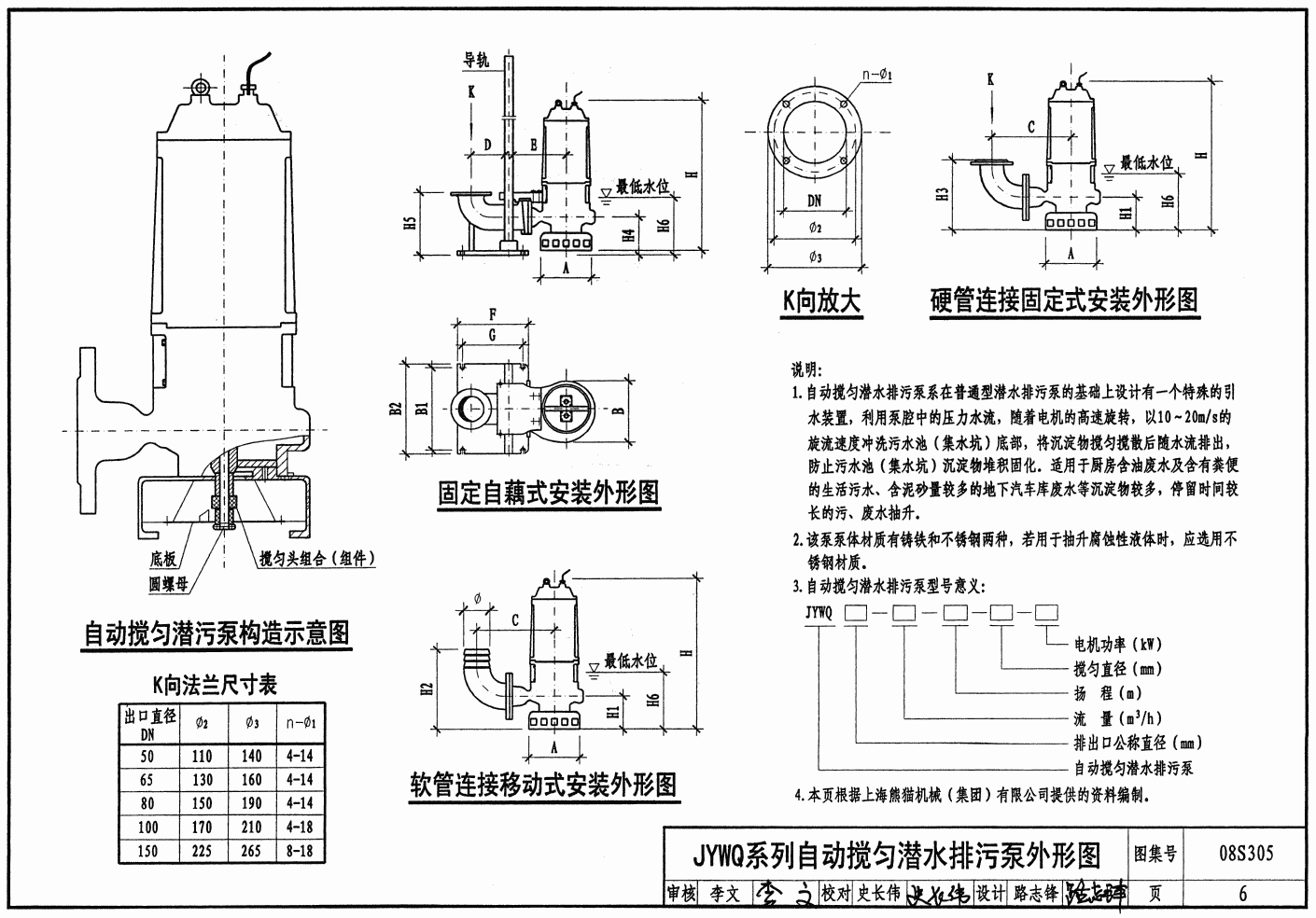 JYWQ系列自動攪勻潛水排污泵軟管硬管安裝外型圖