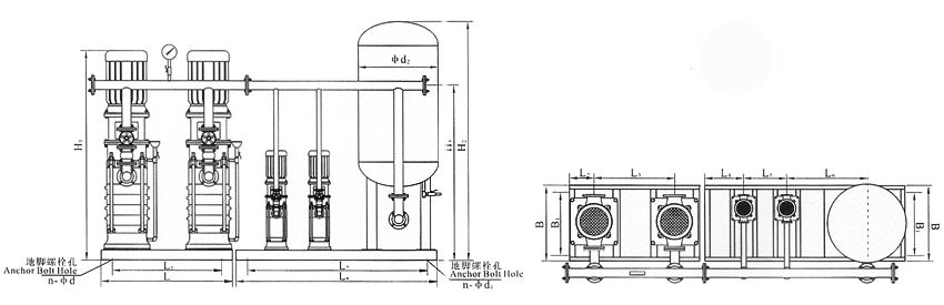自動變頻恒壓成套生活給水設(shè)備安裝尺寸參考圖