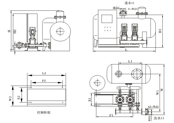 一用一備二用一備無(wú)負(fù)壓供水設(shè)備安裝尺寸圖