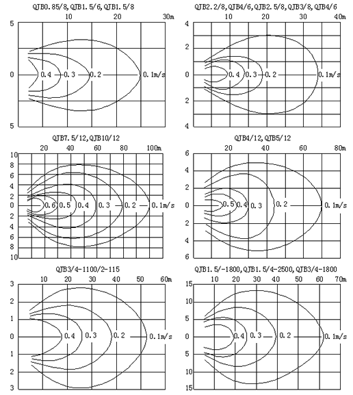 九、QJB型不銹鋼潛水?dāng)嚢铏C(jī)的流速圖: