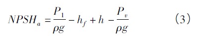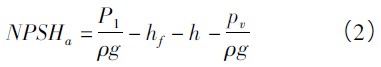 有效汽蝕余量(NPSHa),也即裝置汽蝕余量,是指泵所在裝置(或系統(tǒng)管路)所具有的汽蝕余量,其大小由吸入管路系統(tǒng)參數(shù)、安裝高度和管路中流量等決定的,與泵的結(jié)構(gòu)無(wú)關(guān)。該參數(shù)越大,泵越不容易汽蝕。式(1) 經(jīng)轉(zhuǎn)化可求出吸上或倒灌條件下的裝置汽蝕余量。