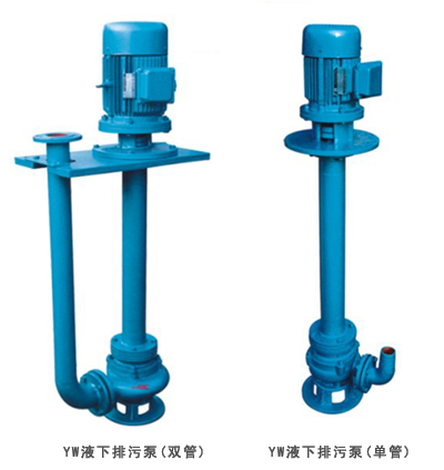 YW型液下排污泵為立式液下式結(jié)構(gòu),整泵有泵體跟電機(jī)兩大部分組成。工作時(shí)泵體浸在水中,電機(jī)露出水面工作,液下深度可達(dá)0.5~5m,并采用獨(dú)特的單葉片或雙葉片葉輪結(jié)構(gòu),能有效通過泵口徑5倍的纖維物質(zhì)及直徑為口徑50%的固體顆粒。產(chǎn)品執(zhí)行JB/T6525-92《離心式污水泵的技術(shù)條件》標(biāo)準(zhǔn)。