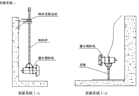 安裝系統(tǒng)Ⅰ只適用池深<4m,機型為QJB0.85/8-260/3-740C和QJB1.5/6-260/3-980C攪拌機,其中Ⅰ-1可在水平方向和垂直方向進行調(diào)節(jié);
