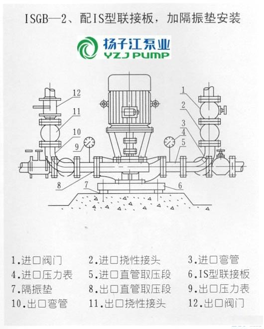 2.為了維修方便和使用安全,在洋的進(jìn)出口管路上各安裝一只調(diào)節(jié)閽及在泵出口附近安裝一只壓力表,以保證在額定揚(yáng)程和流量范圍內(nèi)運(yùn)行,增長水泵的使用壽命。