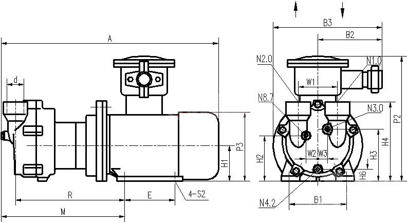 2BV2-Ex水環(huán)真空泵外形尺寸