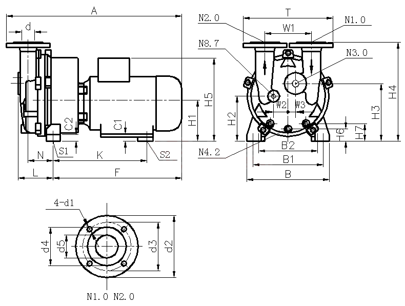 2BV水環(huán)真空泵外形尺寸安裝尺寸