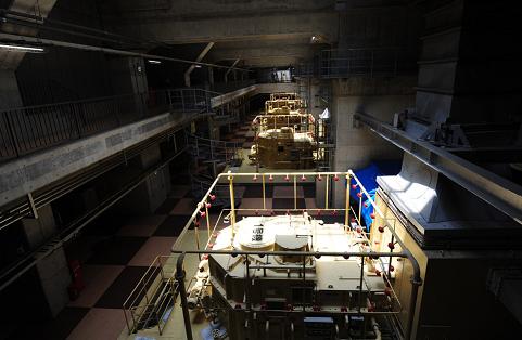圖為“首都圈外圍排水路”系統(tǒng)排水機(jī)房?jī)?nèi)4臺(tái)使用飛機(jī)引擎的大功率抽水泵。