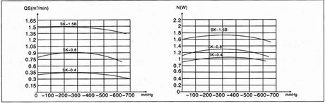 四、SK懸臂式水環(huán)真空泵的性能曲線:
