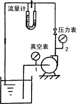【例2-1】右圖為測定離心泵特性曲線的實驗裝置,實驗中已測出如下一組數(shù)據(jù):泵進口處真空表讀數(shù)p1=2.67×104Pa(真空度),泵出口處壓力表讀數(shù)p2=2.55×105Pa(表壓),泵的流量qV=12.5×10-3m3/s,功率表測得軸功率為6.2kW, 吸入管直徑d1=80mm,壓出管直徑d2=60mm,兩測壓點間垂直距離Z2-Z1=0.5m,實驗介質(zhì)為20℃的清水,試計算在此流量下泵的揚程He、有效功率Pe和效率η。 解:(1)泵的揚程:在真空表及壓力表所在截面1-1與2-2間列柏努利方程:  式中:Z2-Z1=0.5m,p1=-2.67×104Pa(表壓) p2=2.55×105Pa(表壓) u1= u2= 兩測壓口間的管路很短,其間阻力損失可忽略不計,故: He=0.5+ =29.88(mH2O) (2)有效軸功率: (W) (3)泵的效率: 在實驗中,如果改變出口閥門的開度,測出不同流量下的有關(guān)數(shù)據(jù),計算出相應(yīng)的H、N和η值,并將這些數(shù)據(jù)繪于坐標(biāo)紙上,即得該泵在固定轉(zhuǎn)速下的特性曲線。 |