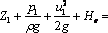 (1)離心泵的理論壓頭 假定條件:①葉輪內(nèi)葉片數(shù)目無限多,葉片的厚度無限薄,無任何環(huán)流現(xiàn)象; ②液體為粘度等于零的理想流體,液體在流動中沒有阻力。 在葉輪的進、出口截面列機械能衡算式,從而導(dǎo)出