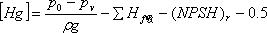 ③由(NPSH)r計算泵的大允許安裝高度[Hg] 一臺泵的必需汽蝕余量(NPSH)r數(shù)值由泵的生產(chǎn)廠家提供,供用戶計算泵的大允許安裝高度[Hg]: (m) 離心泵的實際安裝高度只要低于大允許安裝高度[Hg]就不會發(fā)生汽蝕。