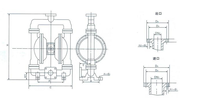 QBY氣動隔膜泵安裝尺寸: