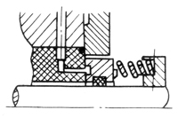 用彈簧壓緊密封端面;有時(shí)用彈簧傳遞扭矩由于端面磨損,使彈簧力在10%"-20%范圍內(nèi)變化。制造簡單,使用范圍受輔助密封圈耐溫限制 |