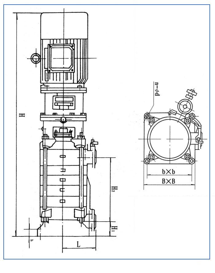 DL系列立式多級離心泵結構圖及安裝尺寸