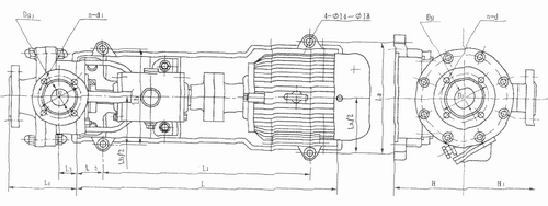 6、如果更換滾珠軸承或泵軸時,必須折下機架,松開前端軸承蓋4只螺釘,折下泵軸后端園螺母和聯(lián)軸節(jié),將泵軸向前端方向打出即可,再后折下后端軸封蓋。