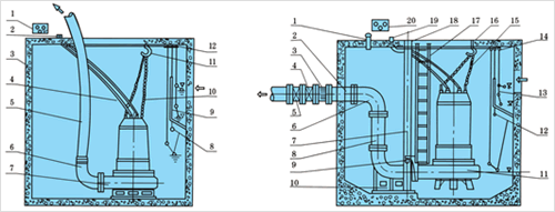 JYWQ自動攪勻潛水排污泵安裝方式示意圖
